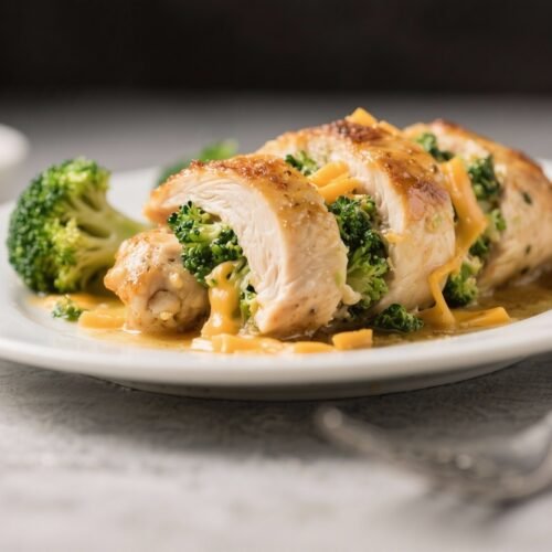 This is the kind of dinner that makes the whole kitchen smell like comfort. Tender chicken breasts are filled with creamy cheddar and crisp-tender broccoli, then baked until juicy with a golden finish. It’s simple enough for a Tuesday, but satisfying enough to serve to company.