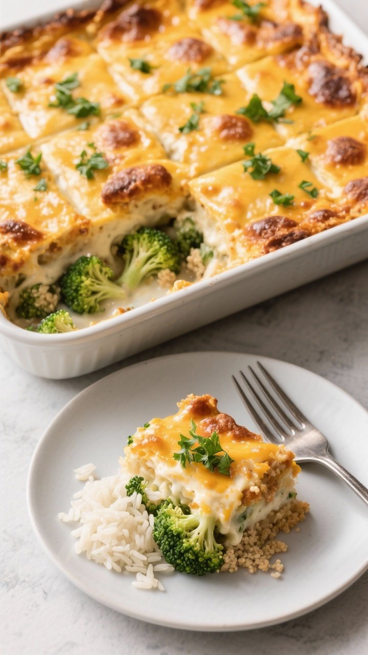 - One-pot shortcut: Cook rice in a Dutch oven, make sauce in the same pot, fold in broccoli, top with cheese, and bake—less cleanup, same payoff.