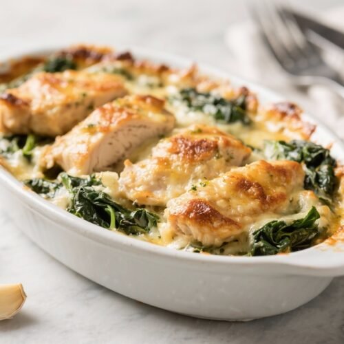If you love a cozy, satisfying dinner that delivers big flavor with minimal effort, this Cheesy Garlic Chicken & Spinach Bake is your new go-to. Tender chicken, a creamy garlic sauce, and a layer of melted cheese make it the kind of meal that feels special without being fussy. It’s weeknight-friendly, crowd-pleasing, and flexible enough to adapt to what you have on hand.