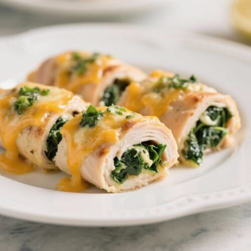 Cheesy Spinach Stuffed Chicken Roll-Ups deliver big comfort with basic ingredients. They’re easy to assemble, bake in under 30 minutes, and feel special without being fussy.