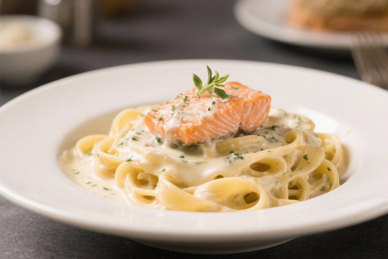 This dish hits the sweet spot between indulgent and practical. You get the lush creaminess of classic Alfredo plus the omega-rich punch of salmon.