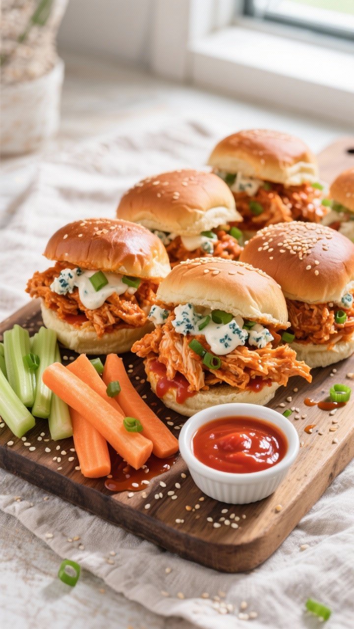 - For serving: slider buns, tortillas, rice, celery sticks, carrots, crumbled blue cheese, ranch, or chopped green onions