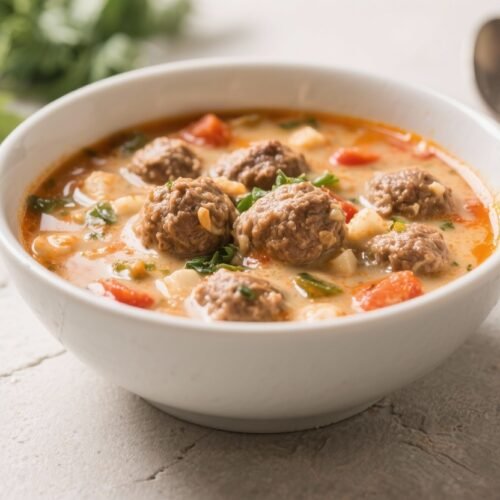 This soup is comfort in a bowl with almost no effort. You toss everything into a pot, let it simmer, and in under an hour you’ve got a creamy, savory Italian-style soup that tastes like it took all afternoon. It’s cozy without being heavy, and the meatballs make it hearty enough for a full meal.