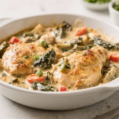 Creamy Tuscan chicken is the kind of meal that feels fancy but takes almost no effort. This dump-and-go version brings all the rich flavors—garlic, sun-dried tomatoes, and tender chicken—without babysitting the stove. You’ll toss everything into your slow cooker or oven dish, set it, and let it do its thing.