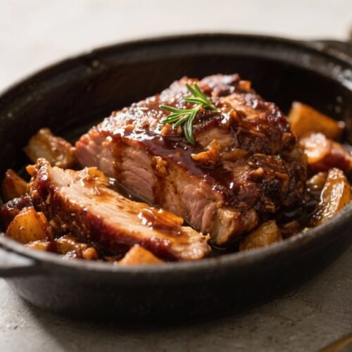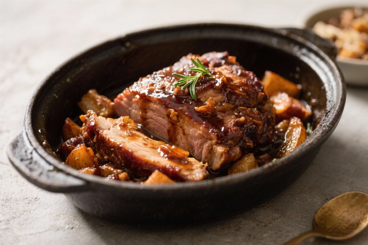 This is the kind of dinner you can throw together in minutes and feel good about serving. The sauce is sweet, tangy, and garlicky, and it turns a simple pork roast into something you’ll want to eat all week. There’s no searing, no fancy steps—just mix, pour, and let the oven (or slow cooker) do the work.