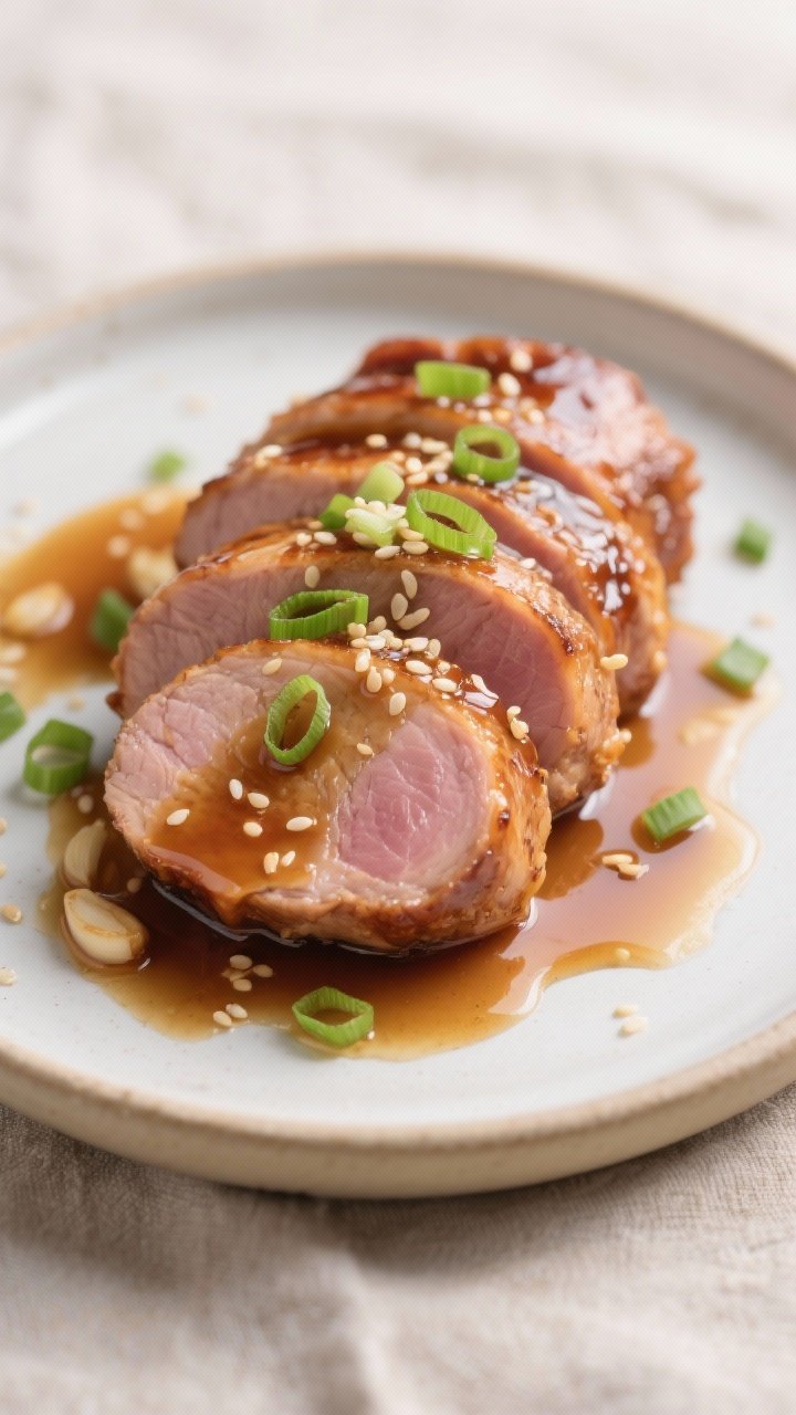- Slice and serve: Slice pork into 1/2-inch medallions. Spoon sauce over the top and garnish with sesame seeds and green onions if you like.