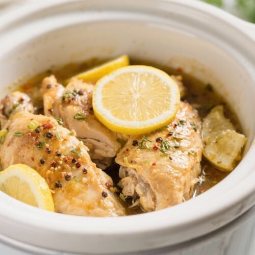 - Sheet pan option: Not using a slow cooker? Bake seasoned chicken at 400°F for 20–25 minutes (breasts) or 25–35 minutes (thighs), adding lemon slices on top.