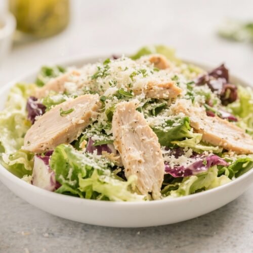 - Taste the base: Before adding the chicken, taste the dressing. It should be garlicky and bright with a little tang. Adjust salt, pepper, or lemon as needed.