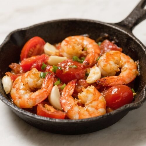 This Garlic Tomato Shrimp Skillet is a weeknight hero—fast, fresh, and deeply satisfying. Tender shrimp simmer in a garlicky tomato sauce with a splash of lemon and a touch of heat. It comes together in under 30 minutes, yet feels like something you’d order at a cozy seaside restaurant.