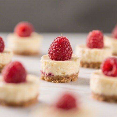 These little cheesecake bites pack big flavor without a heavy sugar crash. They’re creamy, tangy, and dotted with bright raspberries, but still light enough for an afternoon snack. Think classic cheesecake vibes with a protein boost and a tender, no-bake crust.