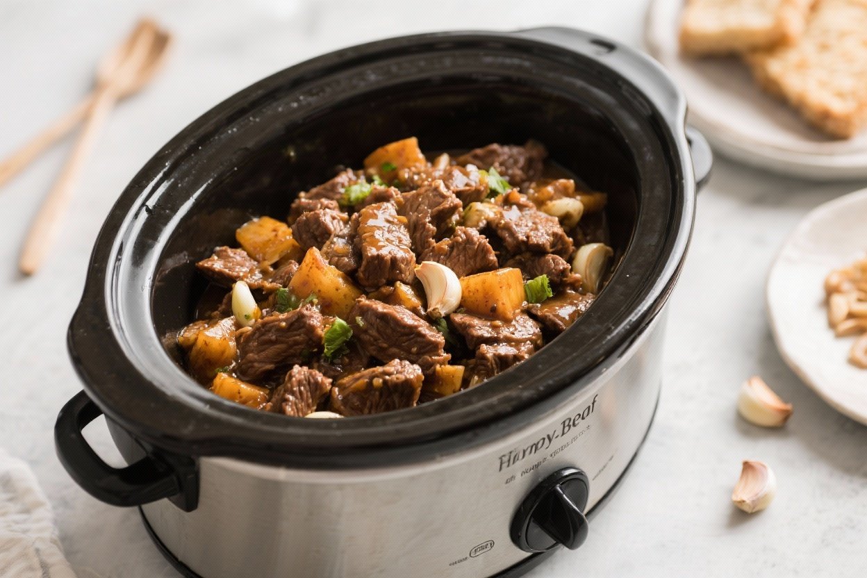 Honey Garlic Beef Dump-And-Go Crockpot Meal – Easy, Comforting, and Flavor-Packed