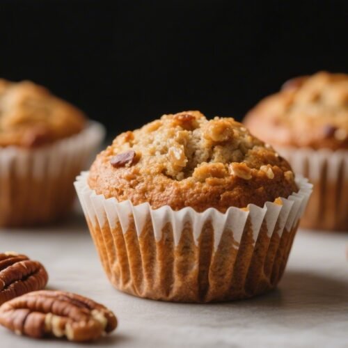 • Fold in pecans: Gently fold in 3/4 cup chopped pecans. Don’t overmix, or the muffins can become dense.