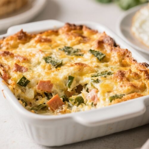 This casserole keeps things simple while delivering big flavor. You get the comfort of eggs, cheese, and sausage, plus a boost of veggies for color and crunch.