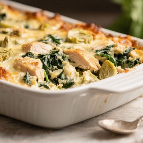 Low-Carb Chicken Spinach Artichoke Casserole – Creamy, Comforting, and Easy
