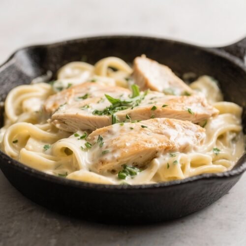 Creamy, cozy, and weeknight-friendly, this Low Carb Creamy Chicken Alfredo Skillet brings all the comfort of classic Alfredo without the heavy pasta. It’s rich, satisfying, and ready in about 30 minutes. You’ll get juicy chicken, a silky garlic-Parmesan sauce, and plenty of veggie “noodles” to keep things light.