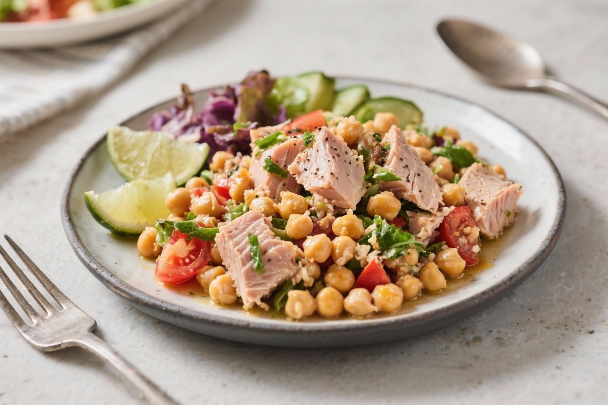 • High-quality protein: Tuna and chickpeas provide complete and complementary protein to support muscle repair and satiety.