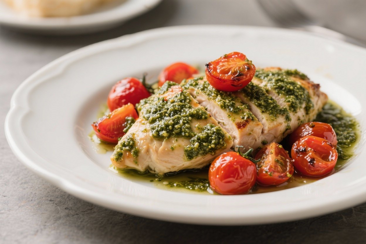Pesto Chicken With Roasted Cherry Tomatoes – Simple, Bright, and Flavor-Packed