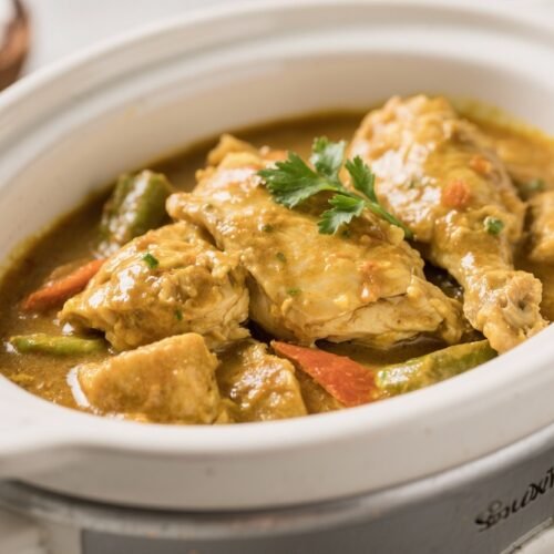 Toss everything in the slow cooker in the morning, and by dinner you’ve got tender chicken and a deeply flavorful curry. Serve it over rice or with warm naan, and you’re set.