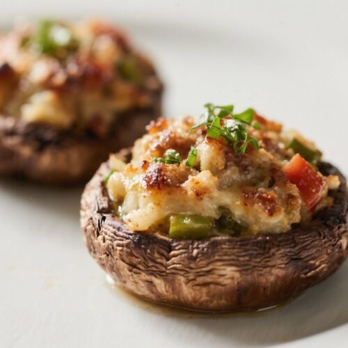 If you want to freeze, assemble the stuffed mushrooms without baking, wrap tightly, and freeze up to 1 month. Bake from frozen at 375°F (190°C) for 20–25 minutes, covering loosely with foil for the first 10 minutes.