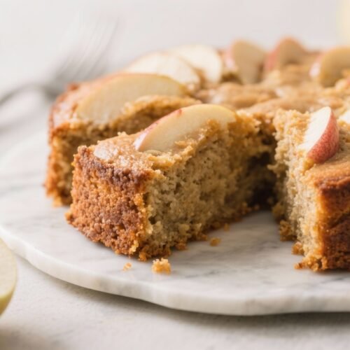 This cake skips refined sugar and relies on whole ingredients, so it’s naturally sweet without being cloying. Apples and whole-wheat pastry flour bring fiber, which helps you feel satisfied and supports steady energy.