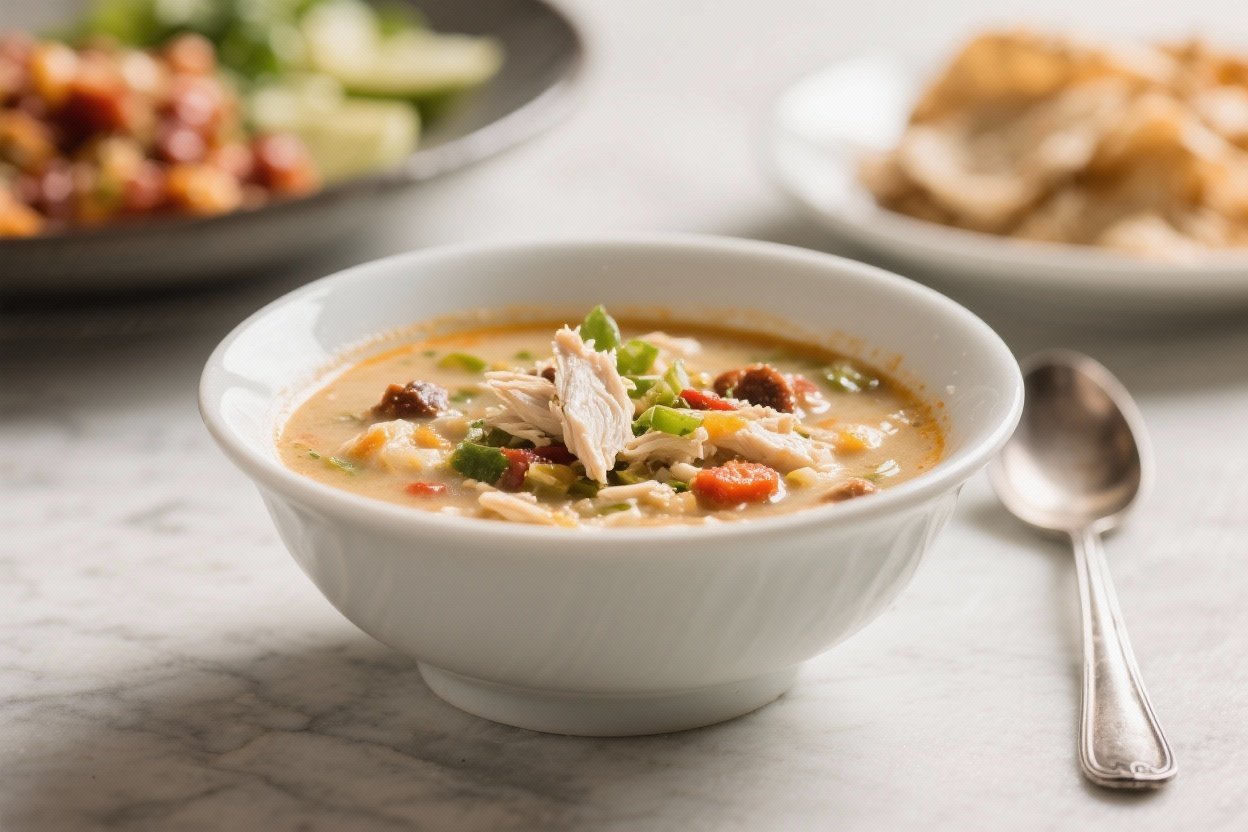 This soup builds flavor in layers, starting with onions, garlic, and mild green chiles. White beans and shredded chicken add body and protein, while a bit of cream or Greek yogurt brings silky richness without weighing it down.